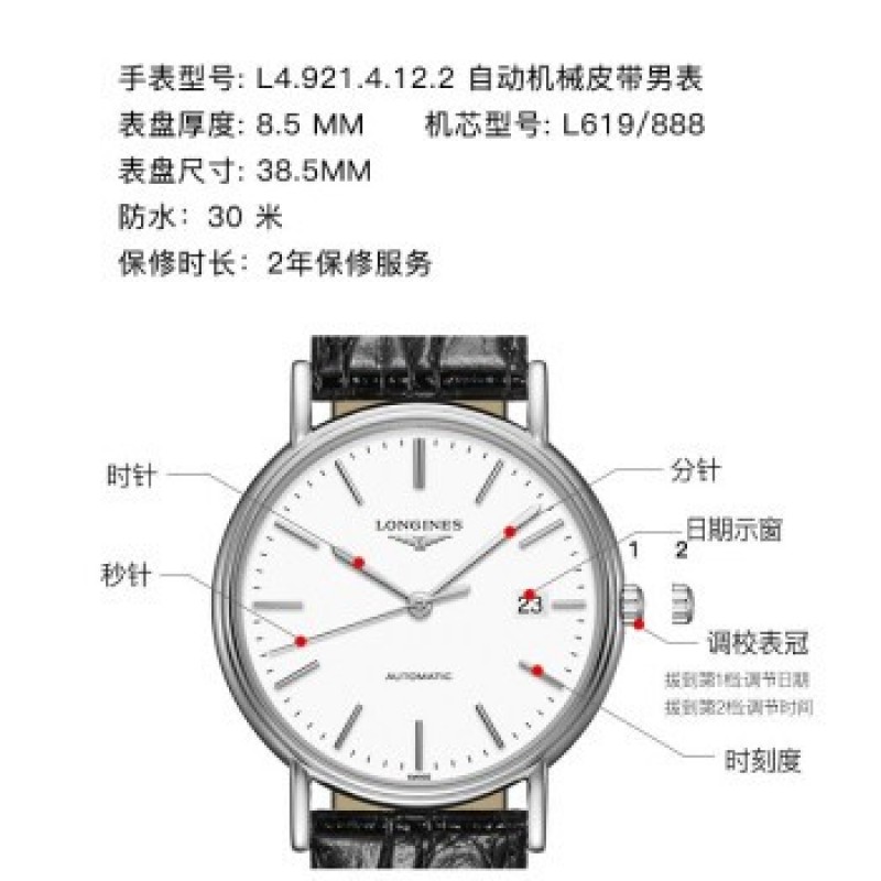 Swiss Longines LONGINES reloj serie de moda cinturón de acero automático mecánico pareja reloj cinturón L4.921/321.4.12.2 2295.4 |