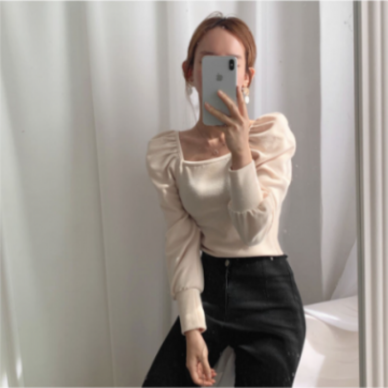 Blusa de manga de globo delgada de moda coreana para mujer baju wanita lengan panjang 54000.0 |
