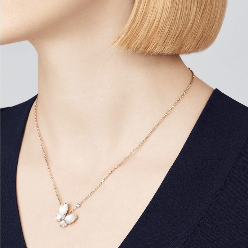 Van Cleef & Arpels Classic Deux Papillons Women's White Mother of Pearl Two Butterfly Necklace VCARO8FO00 632.0 |